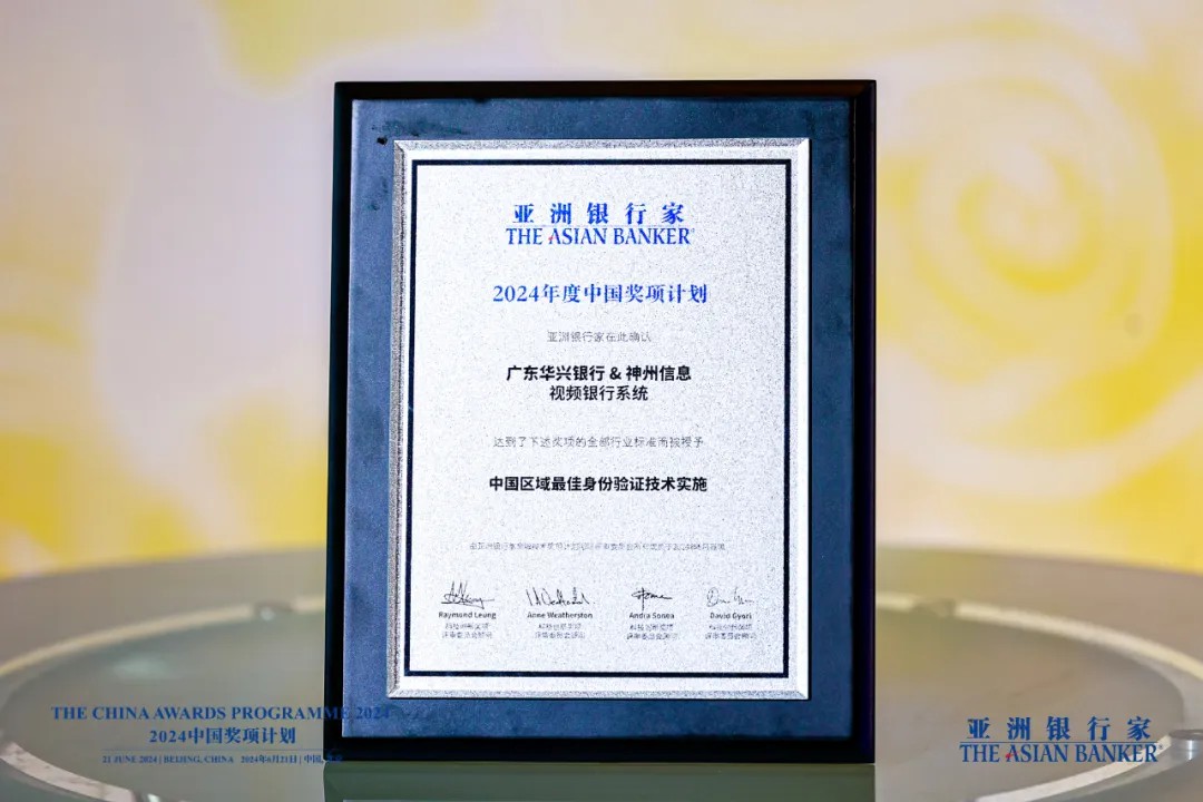 6月21日,亚洲银行家2024中国奖项计划颁奖典礼在北京举行,BB贝博艾弗森官网助力广东华兴银行打造的视频银行项目荣获“中国区域最佳身份验证技术实施”大奖。